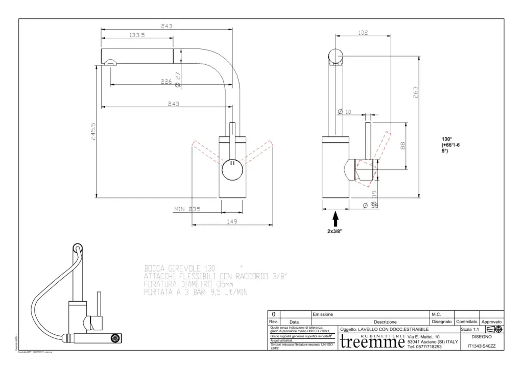 Treemme 40mm Смеситель для кухни с выдвижным изливом, цвет: нержавеющая сталь IT1343IS40ZZ