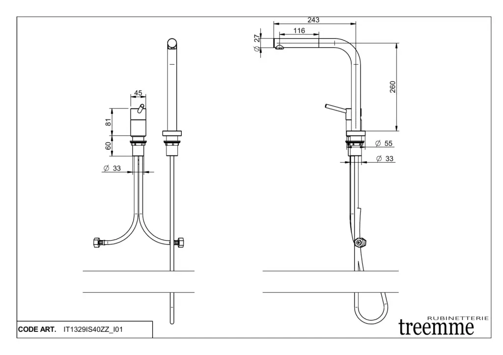 Treemme 40mm Смеситель для кухни с выдвижным изливом, цвет: нержавеющая сталь IT1329IS40ZZ