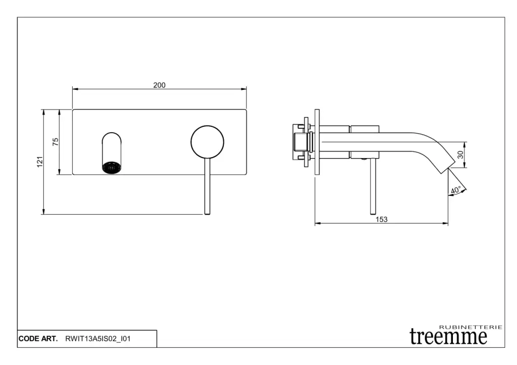 Treemme 40MM Излив настенный для раковины/ванны, цвет: нержавеющая сталь 1363IS