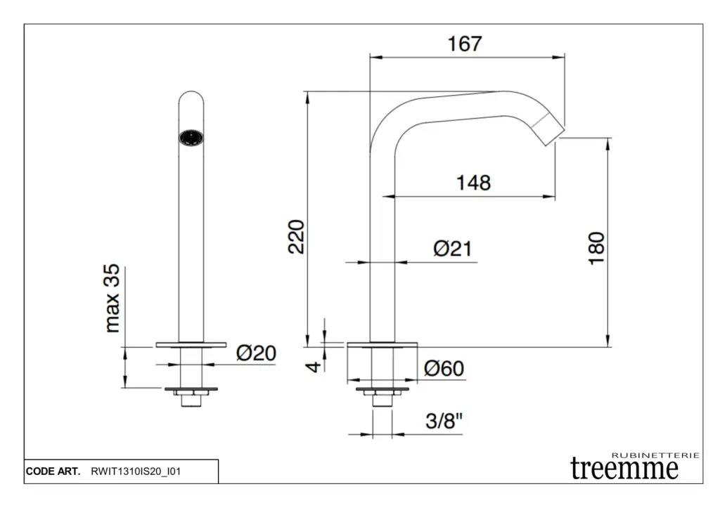 Treemme 40mm Высокий излив для раковины 22 см, цвет: нержавеющая сталь RWIT1310IS20