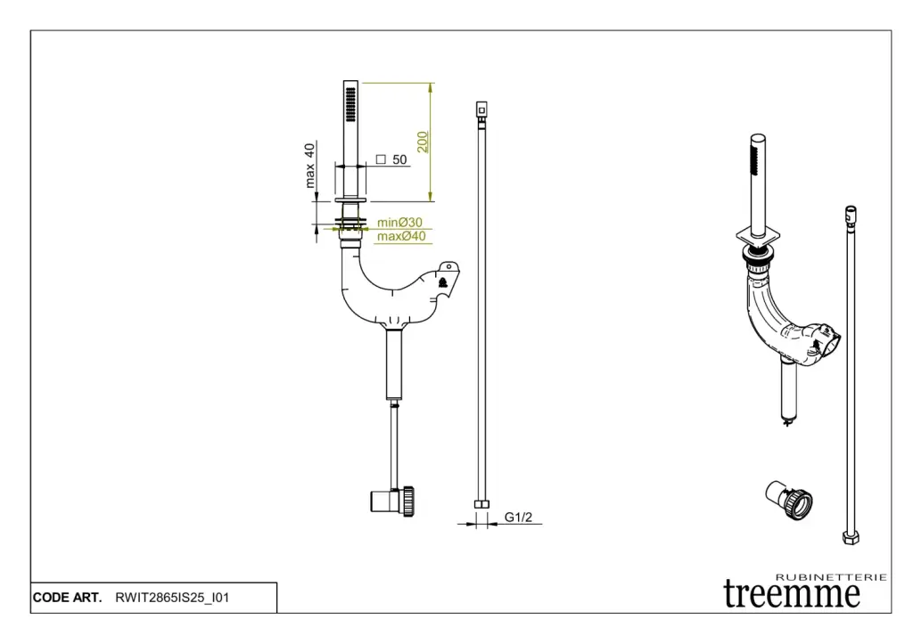 Treemme 5mm Ручной душ на борт ванны, 1 вид струи, цвет: нержавеющая сталь RWIT2865IS25