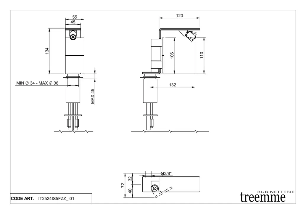 Treemme 5mm Смеситель для биде, без донного клапана, цвет: нержавеющая сталь IT2524IS5FZZ