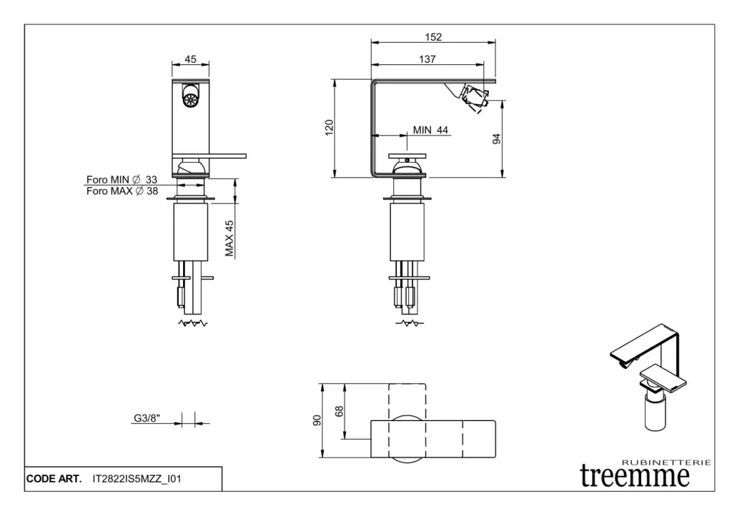 Treemme 5mm Смеситель для биде, без донного клапана, цвет: нержавеющая сталь IT2822IS5MZZ