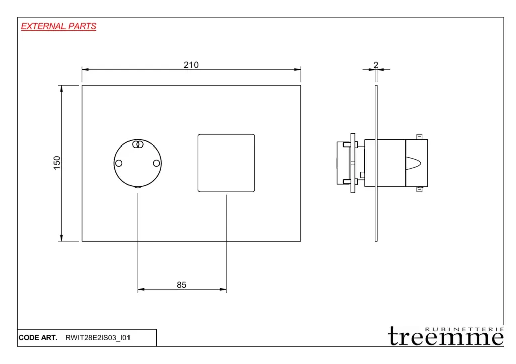 Treemme 5mm Смеситель для душа термостат. встр., 2 потребителя, внеш. часть, цвет: нержавеющая сталь RWIT28E2IS03