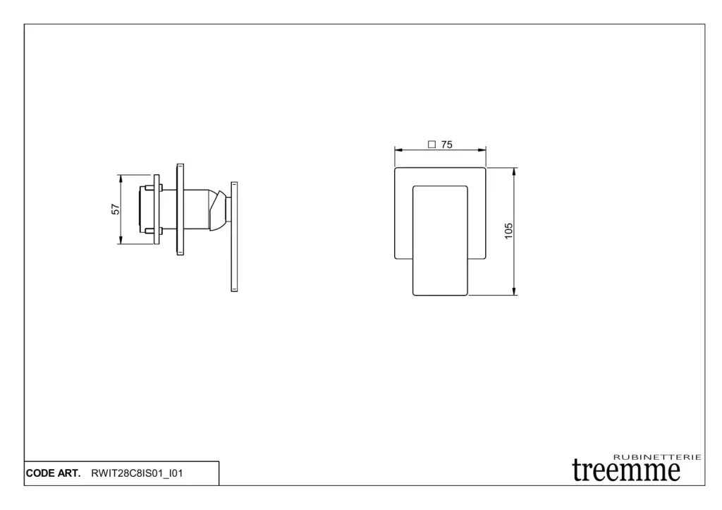 Treemme 5mm Смеситель для душа встраиваемый, 1 потребитель, внешняя часть, цвет: нержавеющая сталь RWIT28C8IS01