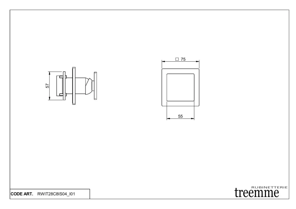 Treemme 5mm Смеситель для душа встраиваемый, 1 потребитель, внешняя часть, цвет: нержавеющая сталь RWIT28C8IS04