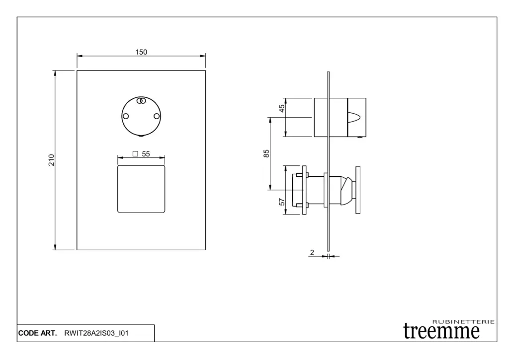 Treemme 5mm Смеситель для душа встраиваемый, 2 потребителя, внешняя часть, цвет: нержавеющая сталь RWIT28A2IS03