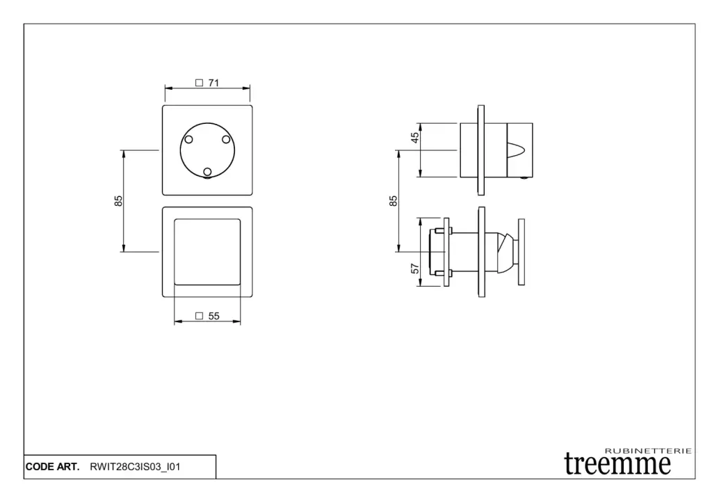 Treemme 5mm Смеситель для душа встраиваемый, 3 потребителя, внешняя часть, цвет: нержавеющая сталь RWIT28C3IS03