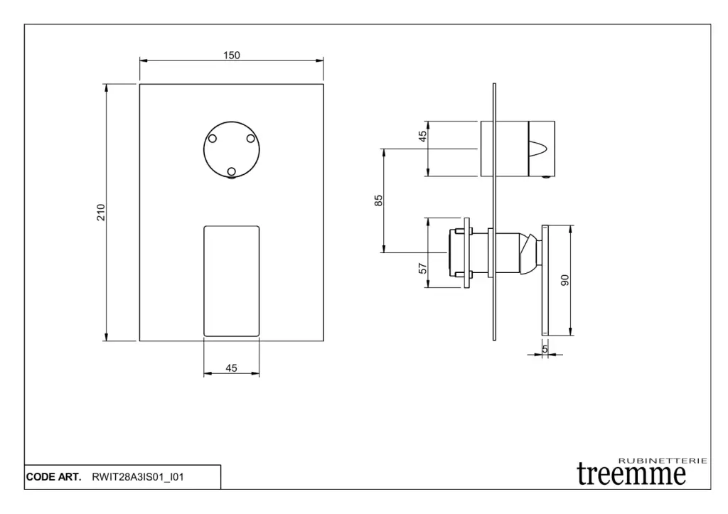 Treemme 5mm Смеситель для душа встраиваемый, 3 потребителя, внешняя часть, цвет: нержавеющая сталь RWIT28A3IS01