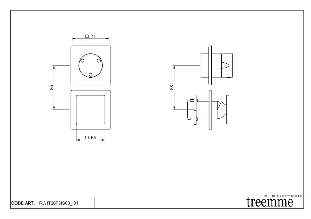 Treemme 5mm Смеситель для душа встраиваемый, 3 потребителя, внешняя часть, цвет: нержавеющая сталь RWIT28F3IS03