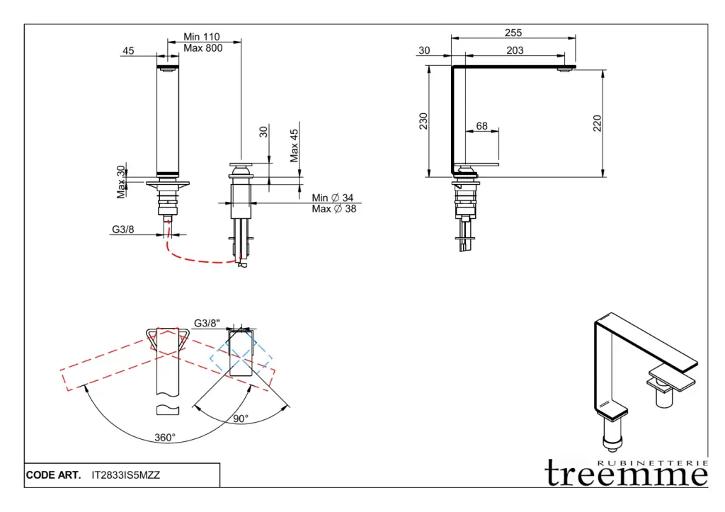 Treemme 5mm Смеситель для кухни без выдвижного излива, цвет: нержавеющая сталь IT2833IS5MZZ