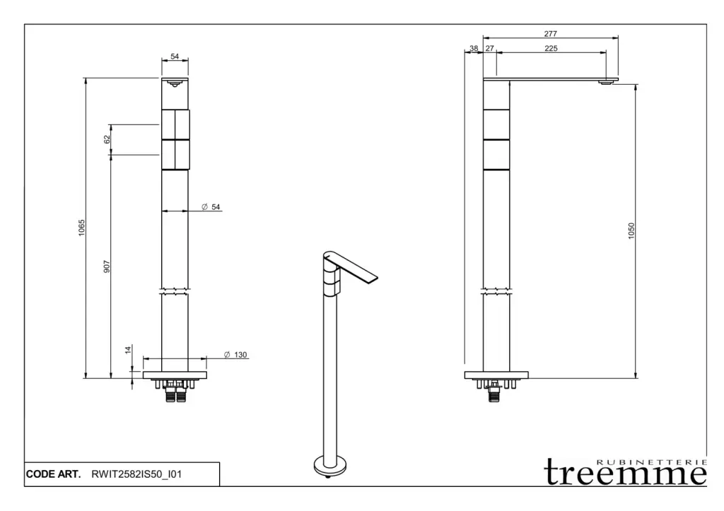 Treemme 5mm Смеситель для раковины напольный, высота излива 105 см, цвет: нержавеющая сталь RWIT2582IS50