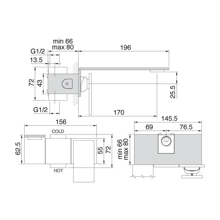 Treemme 5MM Смеситель для раковины настенный встраиваемый, цвет: нержавеющая сталь 28525LIS