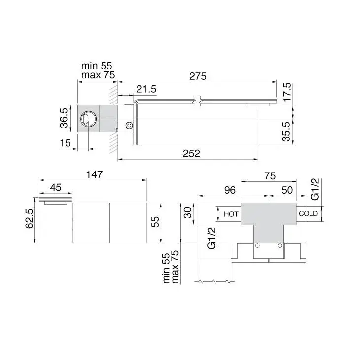 Treemme 5MM Смеситель для раковины настенный встраиваемый, цвет: нержавеющая сталь 28525LIS