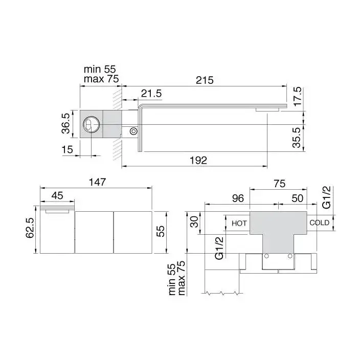 Treemme 5MM Смеситель для раковины настенный встраиваемый, цвет: нержавеющая сталь 28525LIS