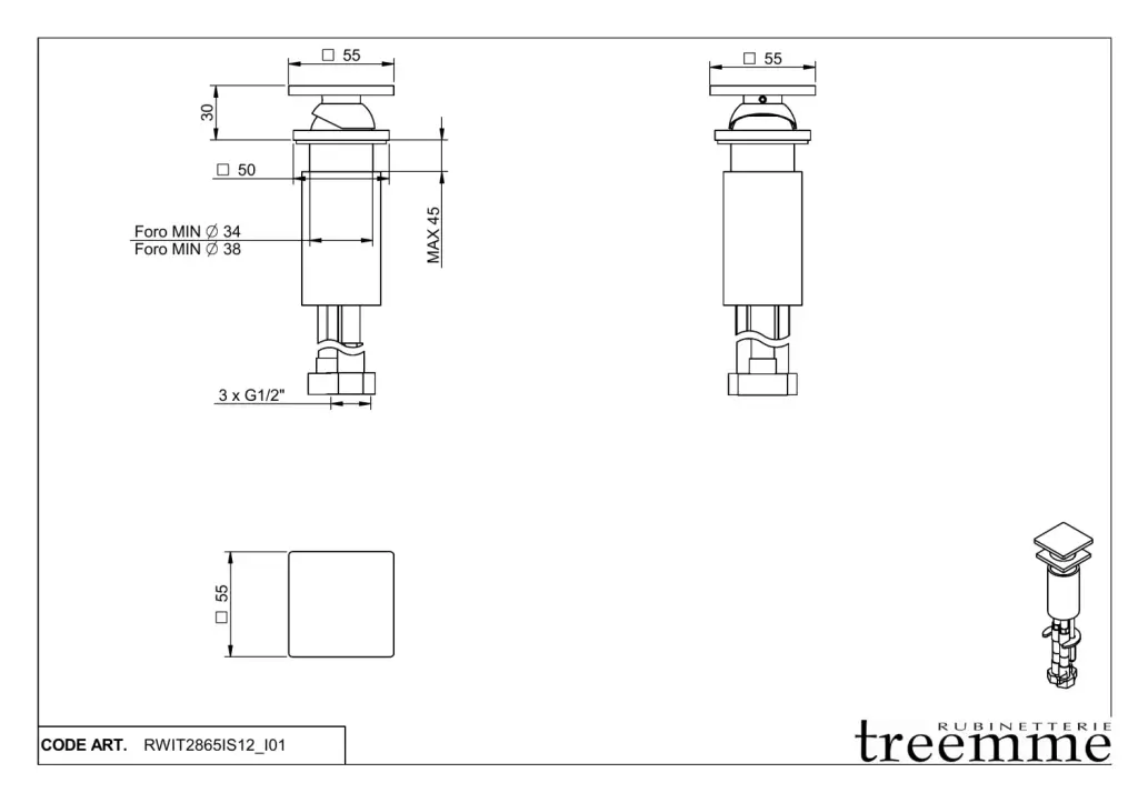 Treemme 5mm Смеситель для раковины настольный управляющий, цвет: нержавеющая сталь RWIT2865IS12