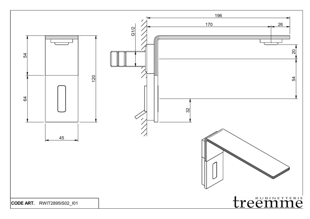 Treemme 5MM Смеситель для раковины настенный встраиваемый, цвет: нержавеющая сталь 28525LIS