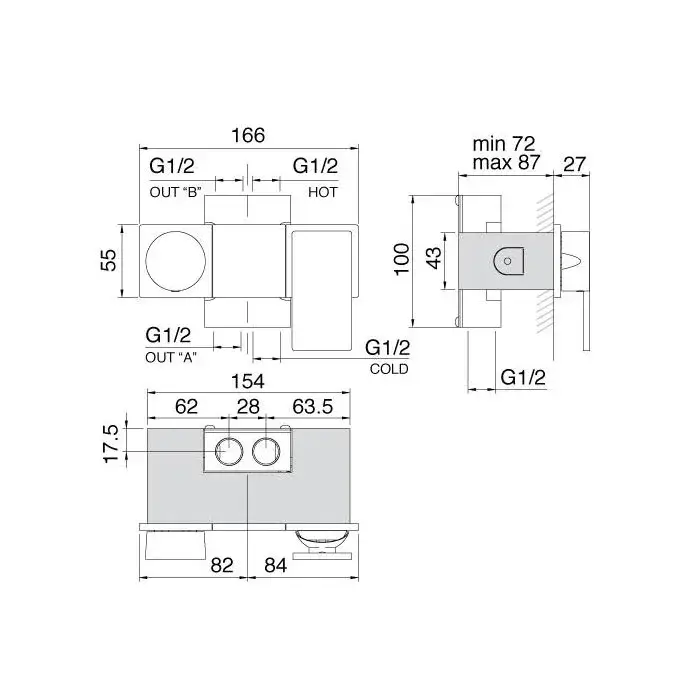 Treemme 5MM Смеситель для ванны/душа настенный встраиваемый c переключением, цвет: нержавеющая сталь 28495MIS