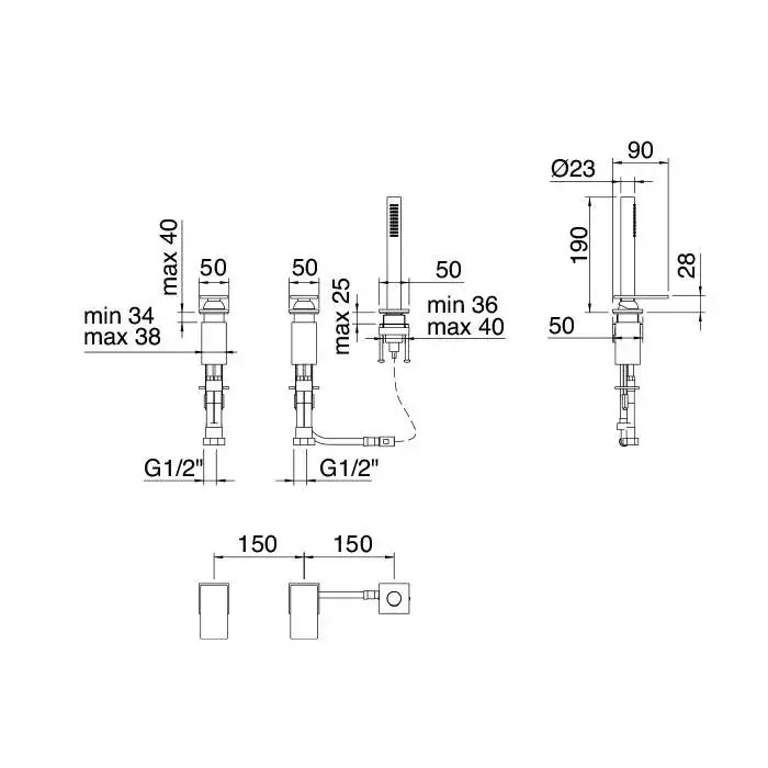 Treemme 5MM Смеситель на борт ванны, на 4 отверстия, цвет: нержавеющая сталь 2868IS