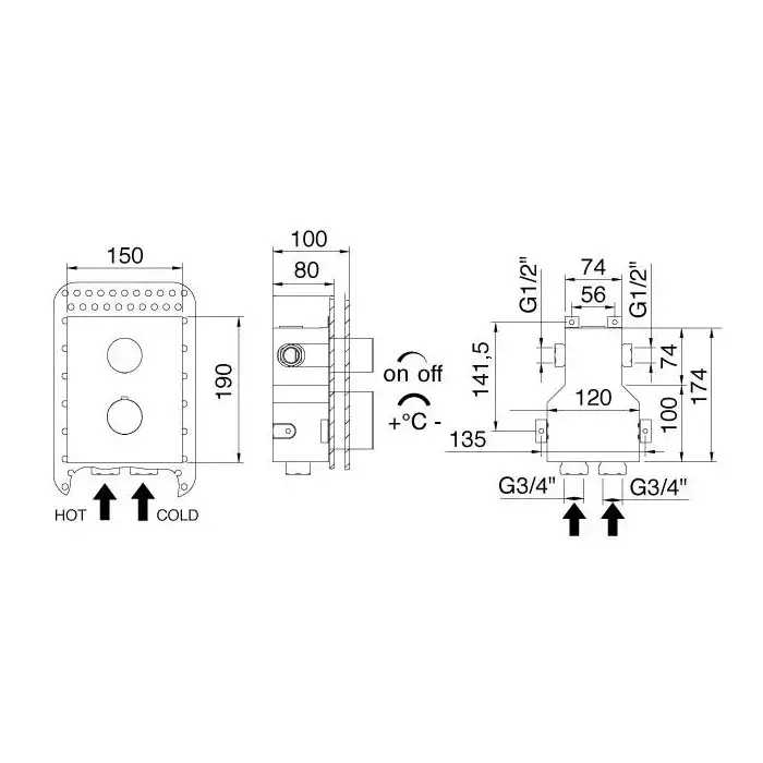 Treemme 5MM Термостат для душа настенный встраиваемый, 1 потребитель, цвет: нержавеющая сталь 2587IS