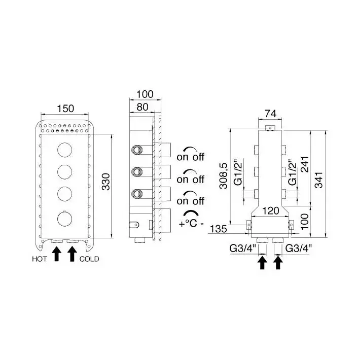 Treemme 5MM Термостат для душа настенный встраиваемый, 3 потребителя, цвет: нержавеющая сталь 2594IS