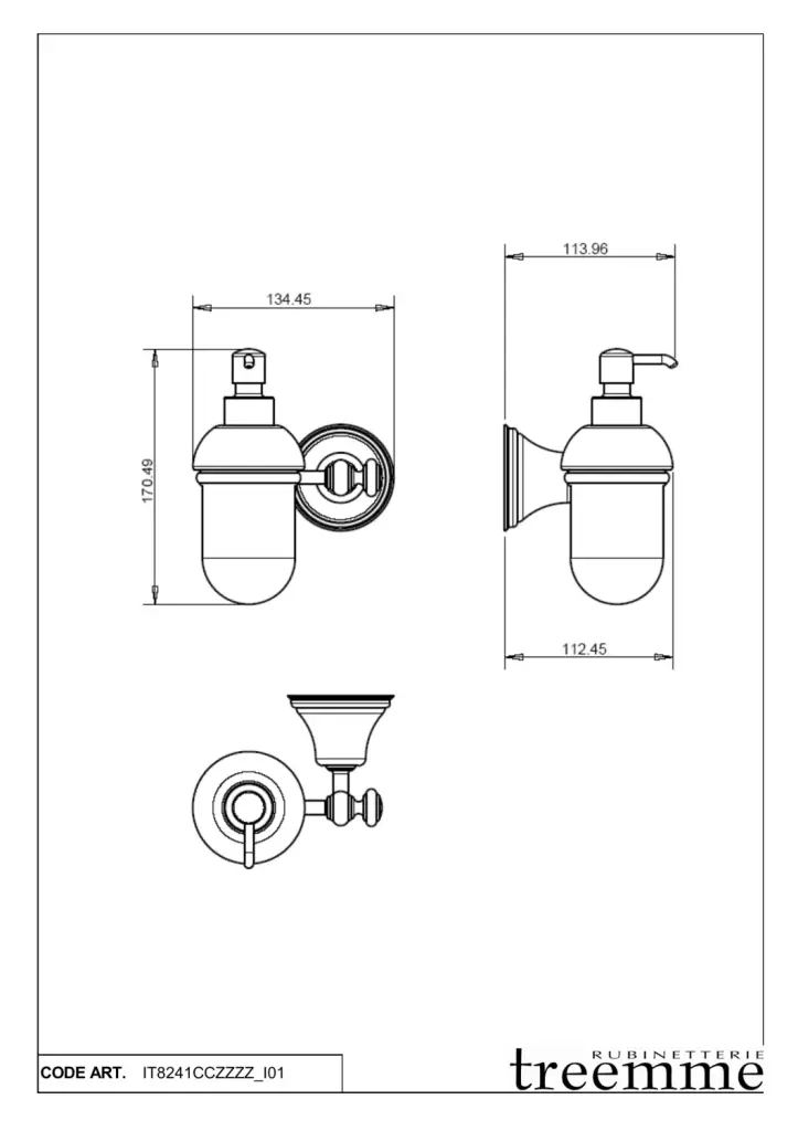 Treemme 8200 Дозатор для жидкого мыла, подвесной, керамическая колба, цвет: chrome IT8241CCZZZZ
