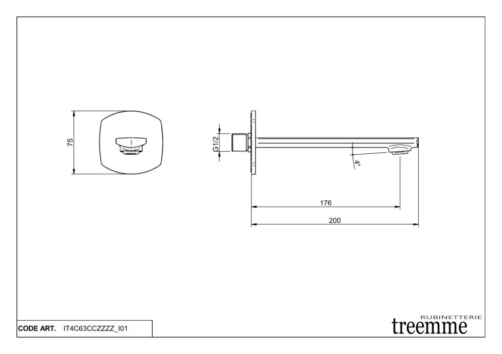 Treemme Albatros Излив настенный для ванны 20 см, цвет: chrome IT4C63CCZZZZ