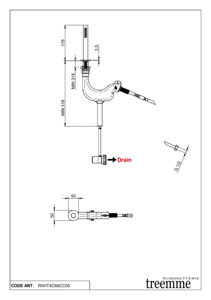 Treemme Albatros Ручной душ на борт ванны, 1 вид струи, цвет: chrome RWIT4C68CC05