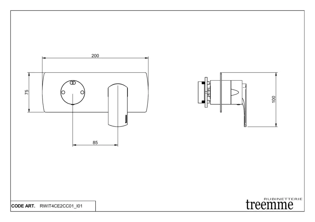 Treemme Albatros Смеситель для раковины встраиваемый, внешняя часть, излив 11 см, цвет: chrome RWIT4CA5CCBC