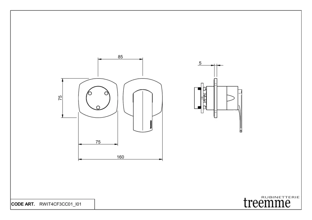 Treemme Albatros Смеситель для душа встраиваемый, 3 потребителя, внешняя часть, цвет: chrome RWIT4CF3CC01
