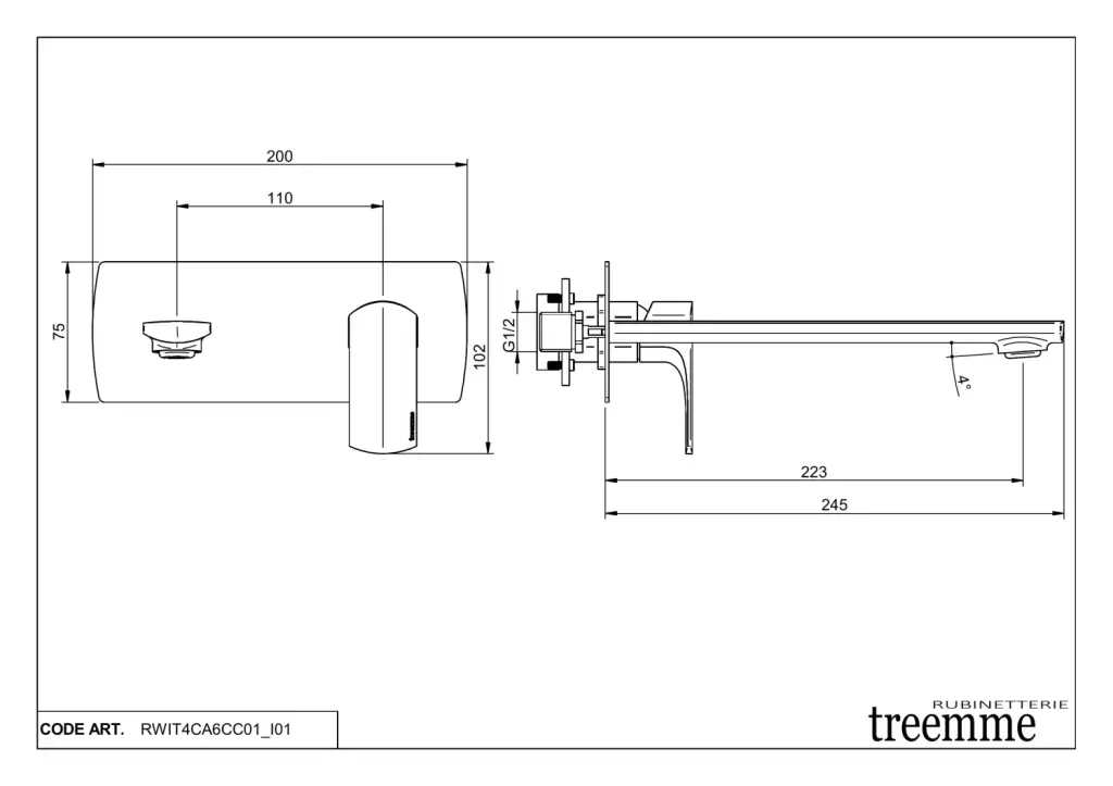 Treemme Albatros Смеситель для раковины встраиваемый, внешняя часть, излив 11 см, цвет: chrome RWIT4CA5CCBC