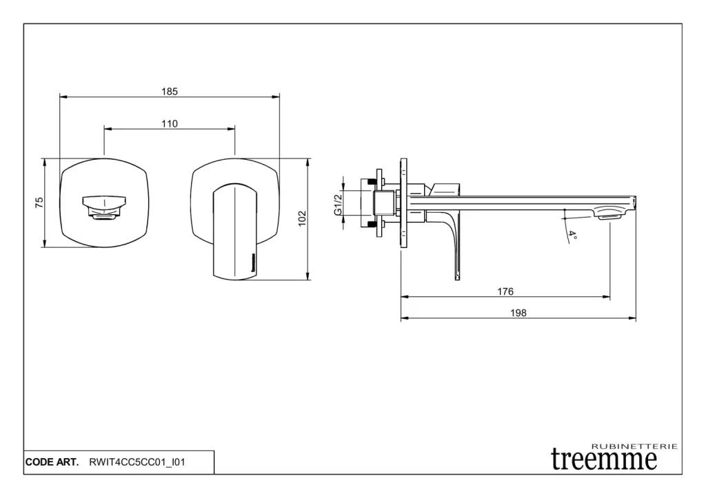 Treemme Albatros Смеситель для раковины встраиваемый, внешняя часть, излив 11 см, цвет: chrome RWIT4CC5CCBC