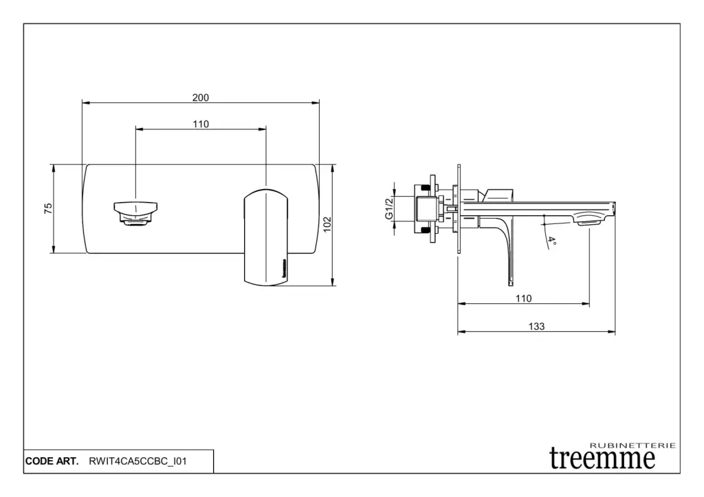 Treemme Albatros Смеситель для раковины встраиваемый, внешняя часть, излив 11 см, цвет: chrome RWIT4CA5CCBC