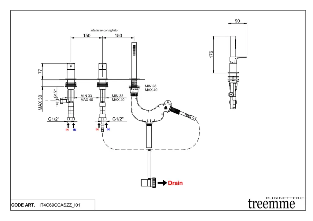 Treemme Albatros Смеситель на борт ванны на 3 отверстия, с ручным душем, внешняя часть, цвет: chrome IT4C69CCASZZ