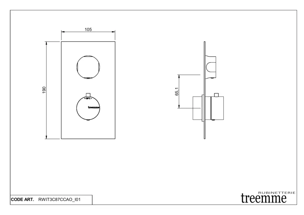 Treemme Appia Смеситель для душа термостатический, 1 потребитель, внешняя часть, цвет: chrome RWIT3C87CCAO