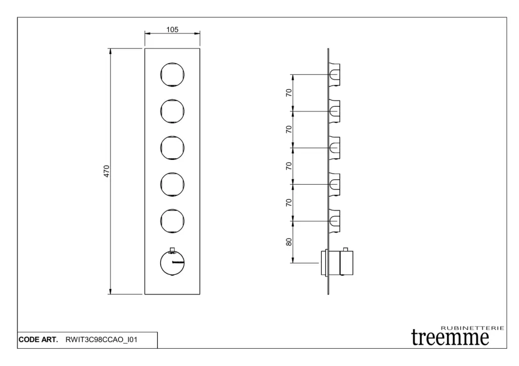Treemme Appia Смеситель для душа термостатический встр., 5 потребителей, внешняя часть, цвет: chrome RWIT3C98CCAO