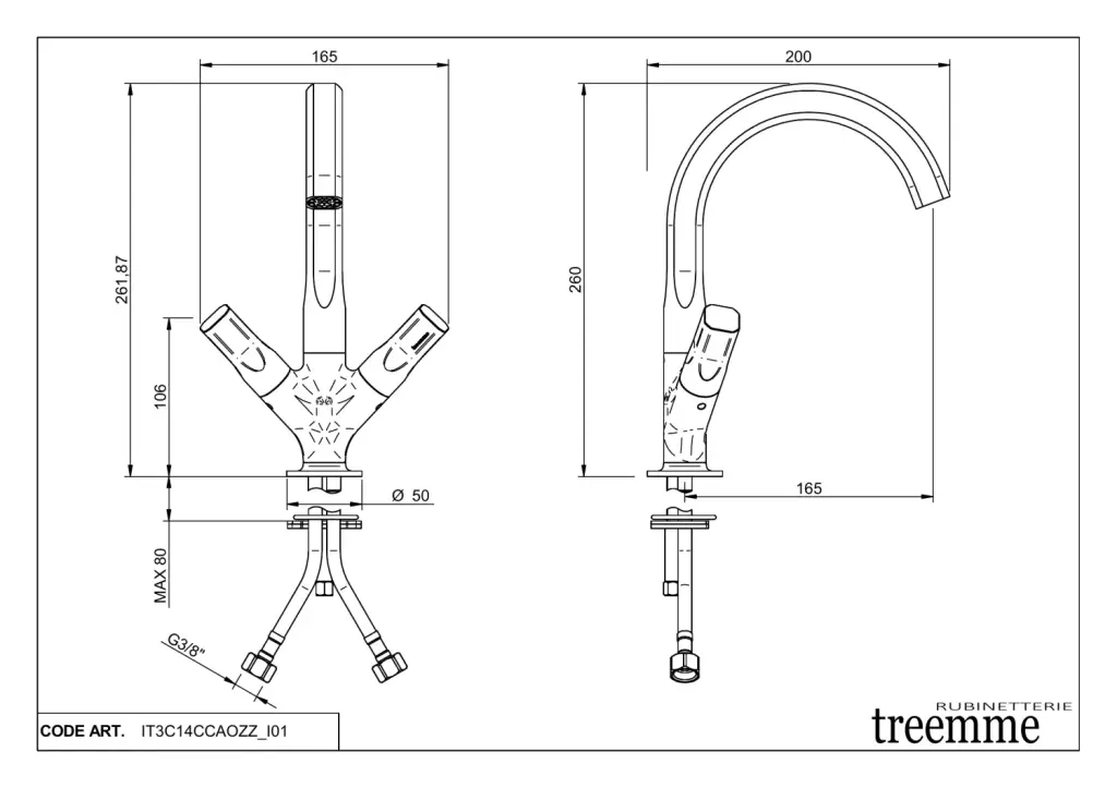 Treemme Appia Смеситель для раковины высокий на 3 отв., без д/к, высота излива 19,6 см, цвет: chrome IT3C16CCAOZZ