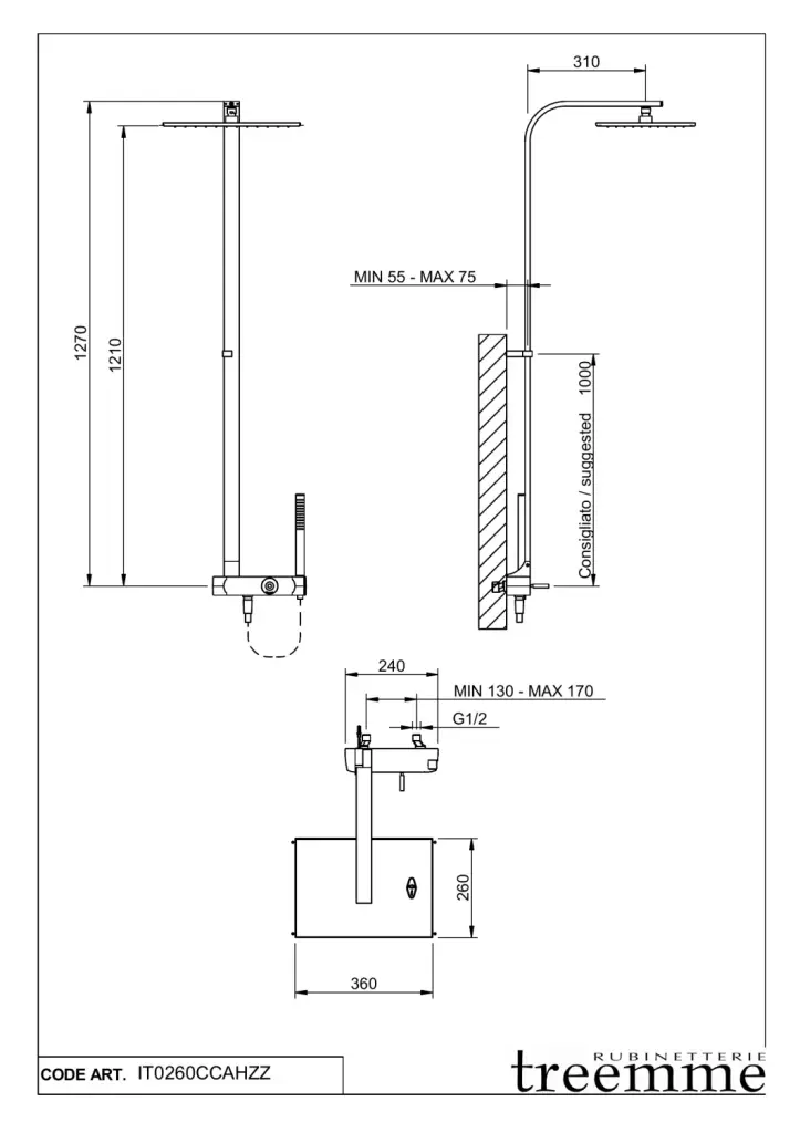 Treemme Arche Душевая стойка: смеситель, ручной душ 1 вид струи, шланг, верхний душ, цвет: chrome IT0260CCAHZZ