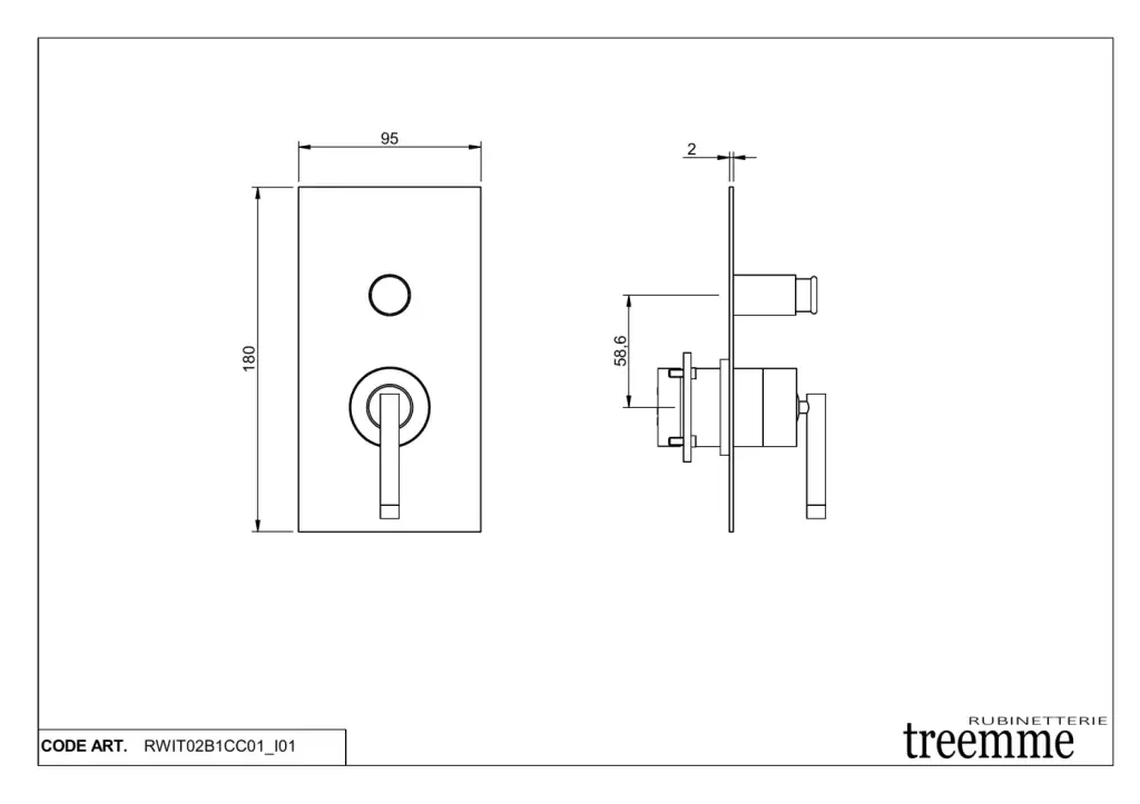 Treemme Arche Смеситель для душа встраиваемый, 1 потребитель, внешняя часть, цвет: chrome RWIT02B1CC01