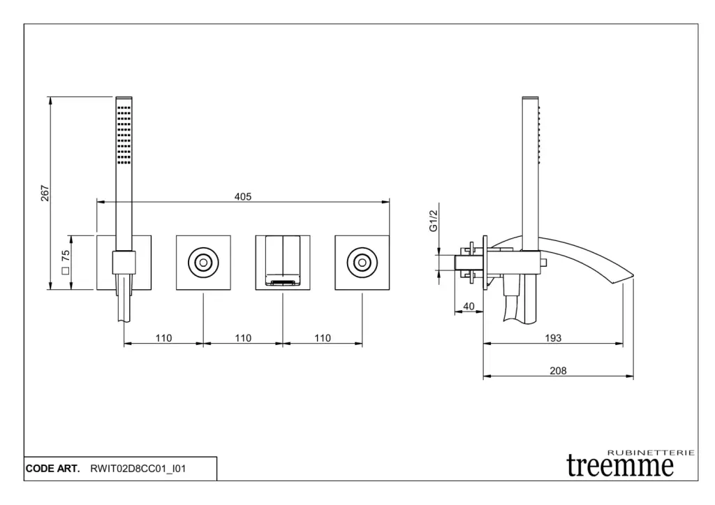 Treemme Arche Смеситель для душа встраиваемый, 2 потребителя, внешняя часть, цвет: chrome RWIT02D8CC01