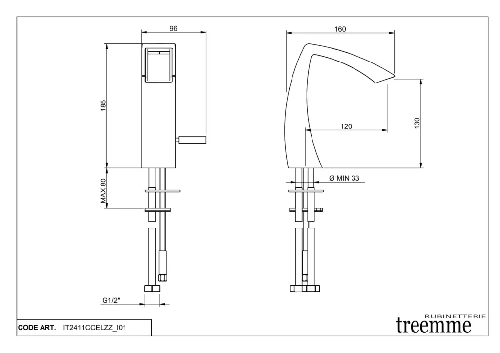 Treemme Arche Смеситель для раковины, без д/к, длина излива 12 см, цвет: chrome IT2411CCELZZ