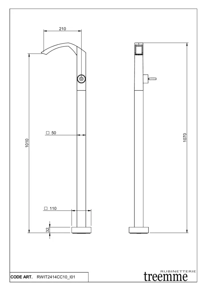 Treemme Arche Смеситель для раковины напольный, высота излива 101 см, цвет: chrome RWIT2414CC10