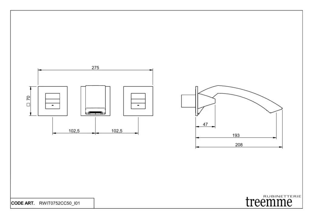 Treemme Arche Смеситель для раковины встраиваемый, внешняя часть, излив 19,3 см, цвет: chrome RWIT0752CC50