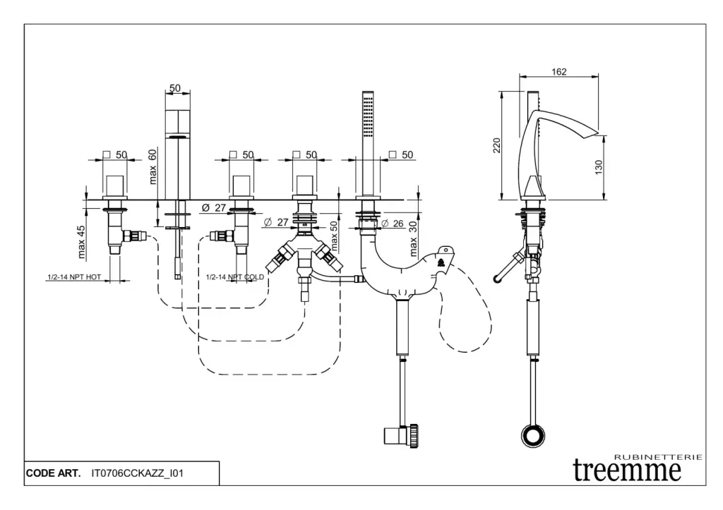 Treemme Arche Смеситель на борт ванны на 5 отверстий, с ручным душем, внешняя часть, цвет: chrome IT0706CCKAZZ