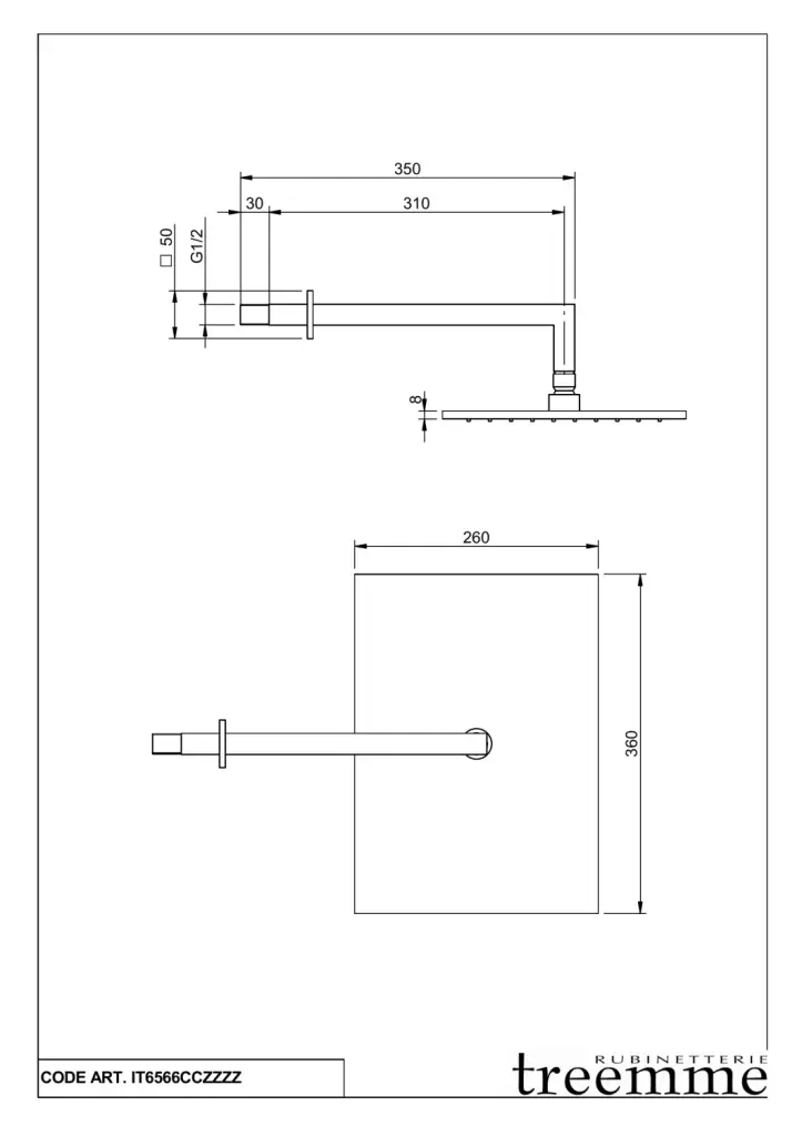 Treemme Arche Верхний душ 36x26 см, 1 вид струи, кронштейн настенный 31 см, цвет: chrome IT6566CCZZZZ