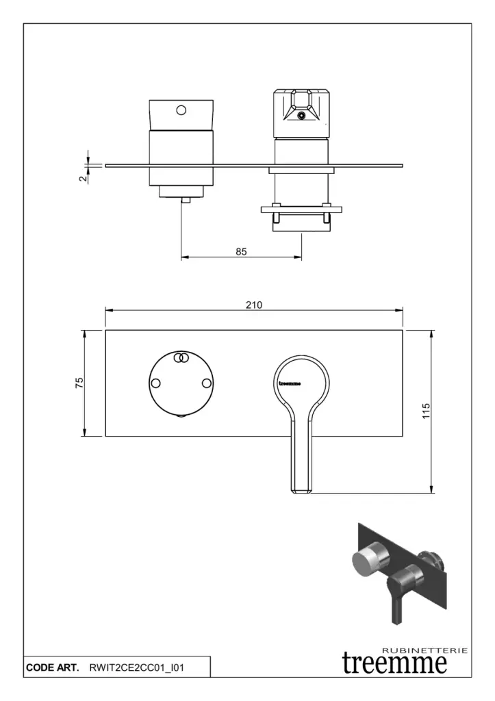 Treemme Aurelia Смеситель для душа встраиваемый, 2 потребителя, внешняя часть, цвет: chrome RWIT2CE2CC01