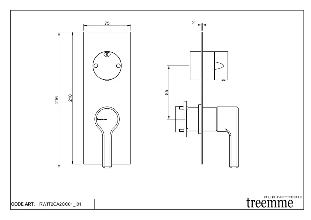 Treemme Aurelia Смеситель для душа встраиваемый, 2 потребителя, внешняя часть, цвет: chrome RWIT2CA2CC01