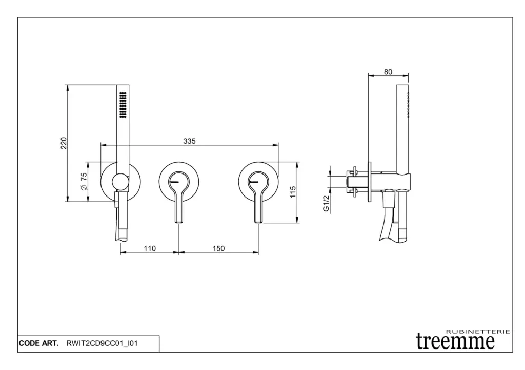 Treemme Aurelia Смеситель для душа встраиваемый, 2 потребителя, внешняя часть, цвет: chrome RWIT2CD9CC01