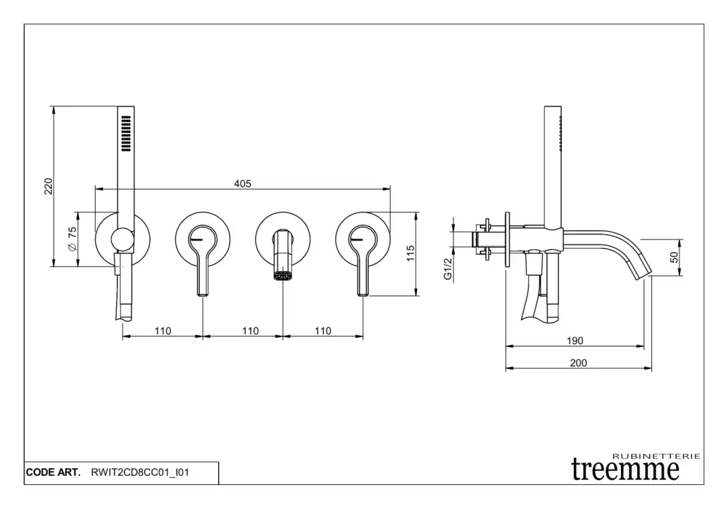 Treemme Aurelia Смеситель для душа встраиваемый, 2 потребителя, внешняя часть, цвет: chrome RWIT2CD8CC01