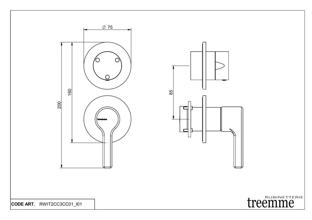 Treemme Aurelia Смеситель для душа встраиваемый, 3 потребителя, внешняя часть, цвет: chrome RWIT2CC3CC01